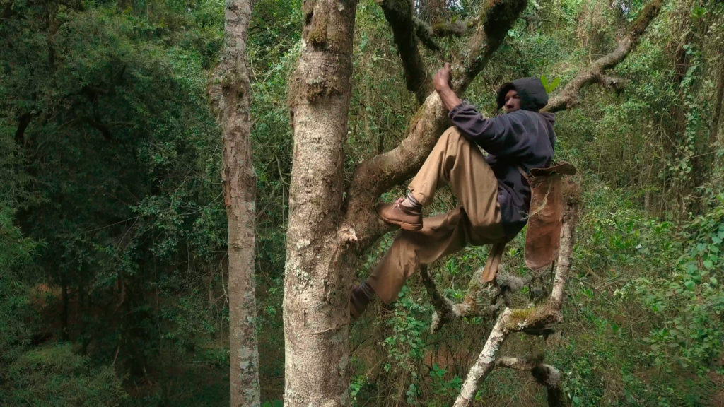 “The Harvesters” is a short observational documentary about three Maasai men harvesting honey in the Mau Forest in Kenya. Without any dialog and with a pensive camera, “The Harvesters” is a carefully composed portrait of often invisible labour in a now extinct forest.